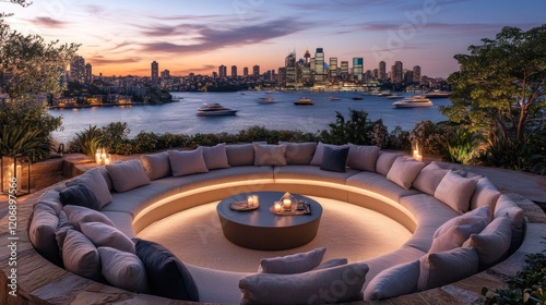 Fototapeta premium Luxury Waterfront Sunset Lounge: Sydney Skyline