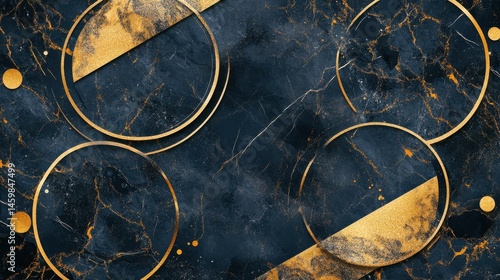 © Johannes, Naklejka premium Luxury wedding invitation cards with gold marble texture background and geometric shapes pattern illustration , no logos, no brands