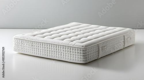 © kirania, Obraz premium Luxury White Mattress with Quilted Top and Side Detail.