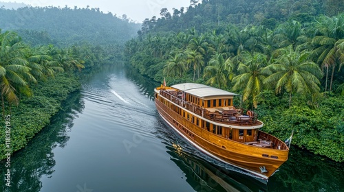 Fototapeta premium Luxury Yacht Cruise on a Tropical River: An Unforgettable Journey Through...