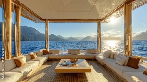 Fototapeta premium Luxury yacht deck sunset mountains sea relaxation