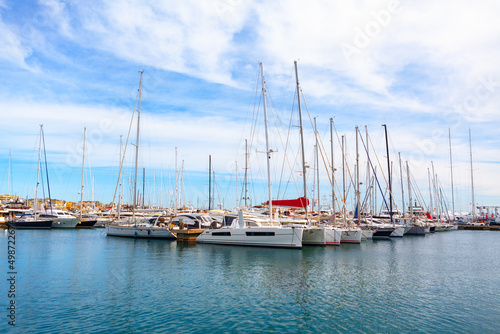 Fototapeta premium Luxury Yacht harbour in Mallorca . Moored yachts in port of Palma de Majorca