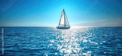 © Tunsale, Obraz premium Luxury yacht sailing on a sunny sea. AI generated illustration.