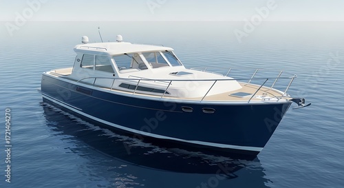 © Dewi, Fototapeta premium Luxury Yacht White and Blue Cruiser Sailing on Calm Ocean Water