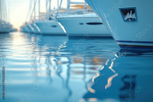Obraz premium Luxury Yachts Moored at Calm Marina at Sunset