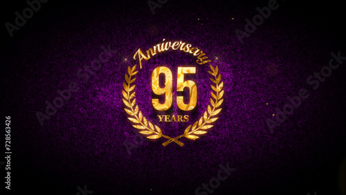 Fototapeta premium Luxury 95 years Anniversary Laurel Wreath Label Gold Texture On Dark Purple...