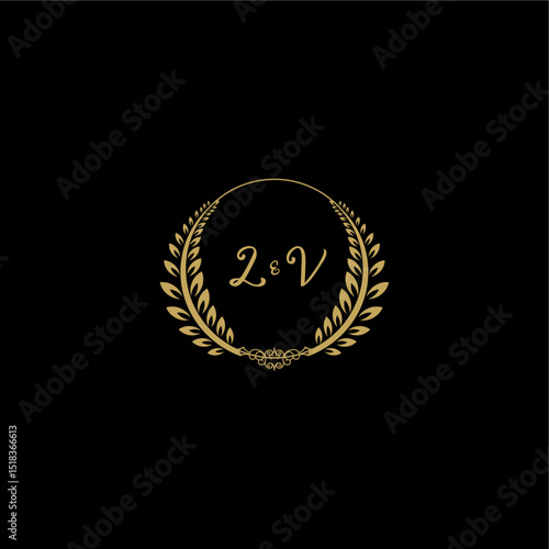 © desi, Fototapeta premium LV beautiful feminine and elegant wedding monogram initial logo with circle floral gold