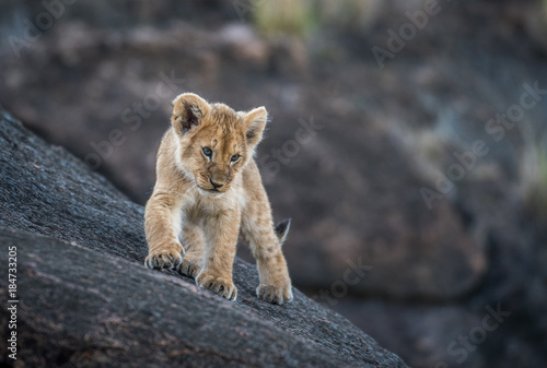© Tony Campbell, Obraz premium Lwiątko na skale