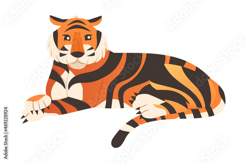 Fototapeta premium Lying tiger. Big wild cat vector illustration on white background