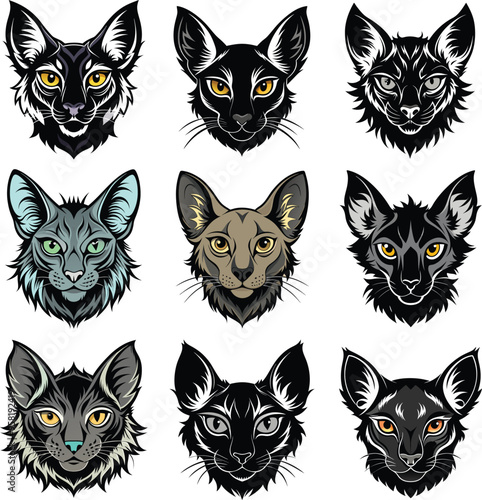 © webechdigital, Obraz premium Lykoi Cats Head Silhouette Vector Set