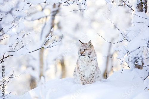© kjekol, Fototapeta premium Lynx cub in the cold winter forest