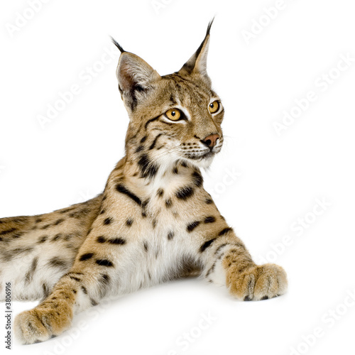 © Eric Isselée, Fototapeta premium Lynx in front of a white background