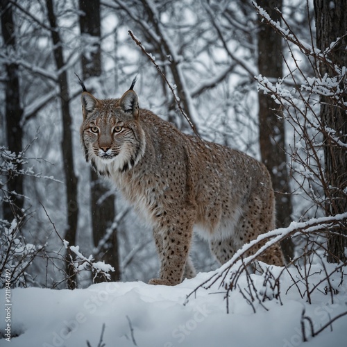 © muhaamd, Obraz premium Lynx Prowling Through a Snowy Thicket