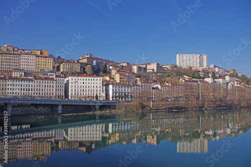 © photoszam, Fototapeta premium Lyon, la Croix Rousse vue des quais du Rhône