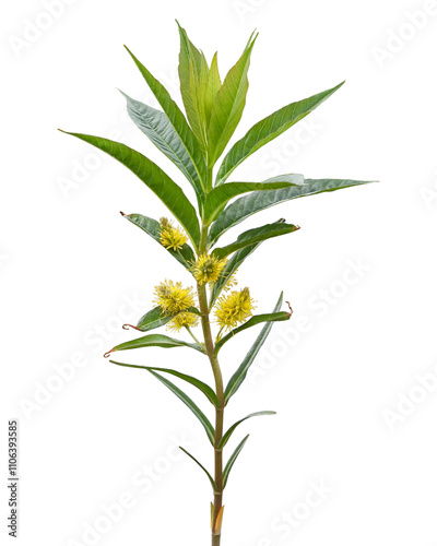 Naklejka premium Lysimachia thyrsiflora | Tufted Loosestrife | Native North American Wetland Wildflower Isolated on White Background