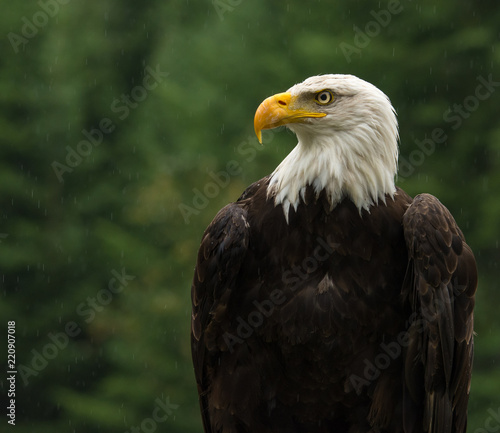 Obraz premium Łysy orzeł w deszczu rozgląda się za posiłkiem