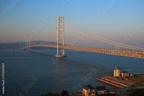Obraz premium 明石海峡大橋、明石海峡を横断し本州と淡路島を結ぶ、全長3,911m、世界最長の吊り橋。パールブリッジの愛称を持つ