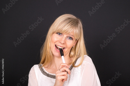 © usk75, Obraz premium Mädchen kaut auf einem Stift
