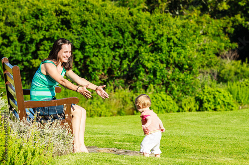 © mophoto, Fototapeta premium Mädchen macht erste Schritte im Park