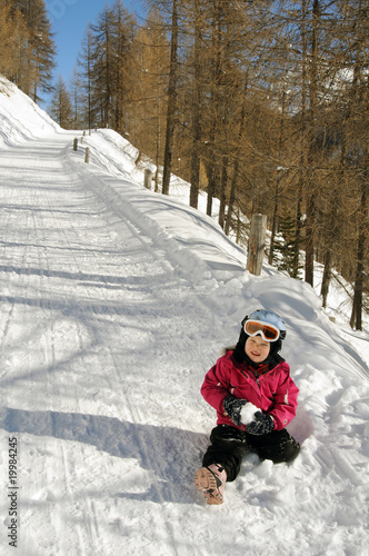 © FotoPrisma, Naklejka premium Mädchen spielt im Schnee