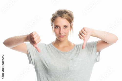 Fototapeta premium Mädchen zeigt Daumen nach unten
