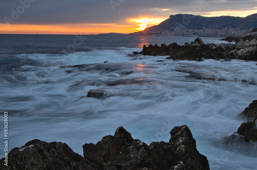 Obraz premium Méditerranée, crépuscule vers Monaco