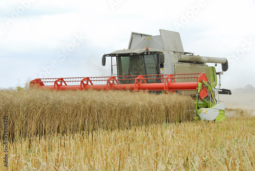 Fototapeta premium Mähdrescher bei der Rapsernte 066