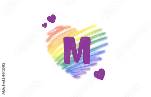 Obraz premium M Heart Letter Logo Design with Rainbow Color Brush Stroke Paint, Vector...