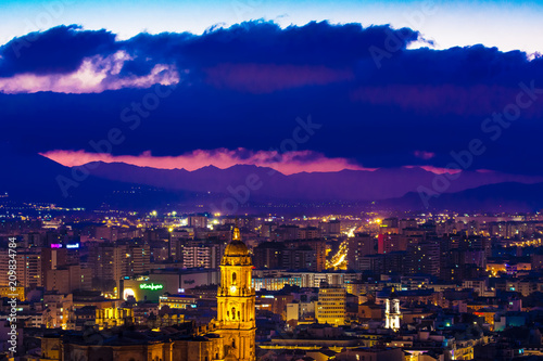 Fototapeta premium Málaga Andalucía Spain - panoramic night view