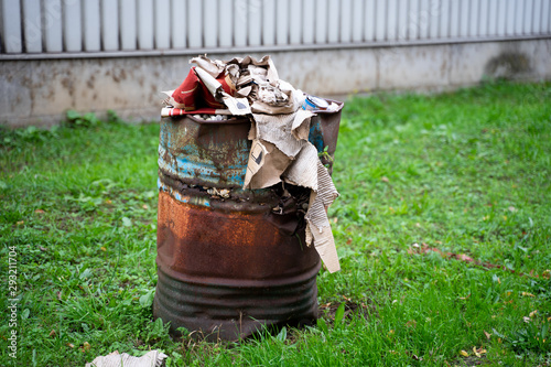 Fototapeta premium Mülltonne steht auf dem Gras