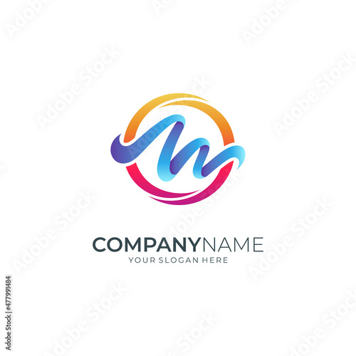 © cahyo, Obraz premium M logo in minimalist style with circle background, initial letter M logo template with gradient colors