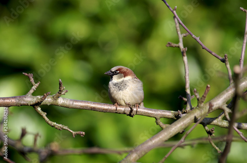 © cuhle-fotos, Fototapeta premium Männlicher Haussperling auf einem Zweig im Winter