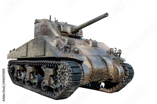 © Wirestock, Obraz premium M4 Sherman tank from World War II on white background