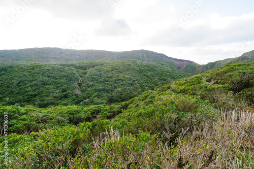 Naklejka premium 標高854mの八丈島最高峰、八丈富士の登山トレッキング。 八丈富士の山頂は大きなカルデラになっている。...