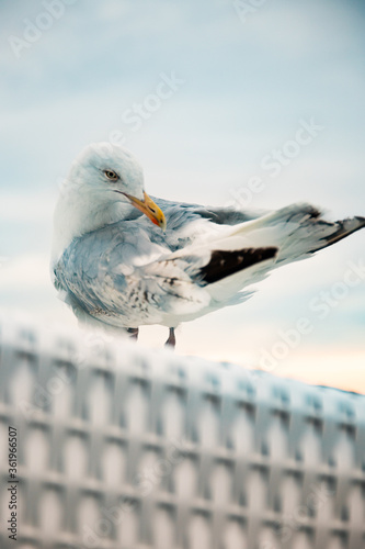 © fotograf-halle.com, Obraz premium Möve auf dem Strandkorb