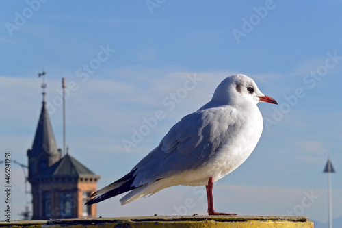 © Peter Allgaier, Obraz premium Möwe auf einem Pfahl