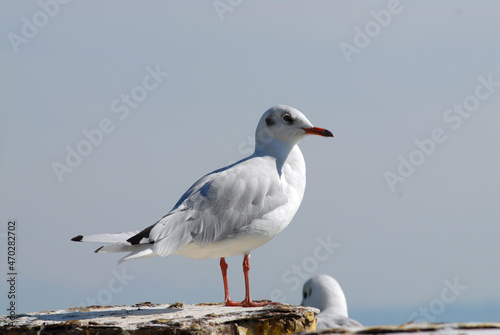 © Peter Allgaier, Obraz premium Möwe auf einem Pfahl