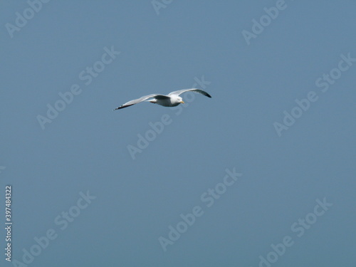 © Claudia, Obraz premium Möwe im Anflug vor tiefblauem Himmel