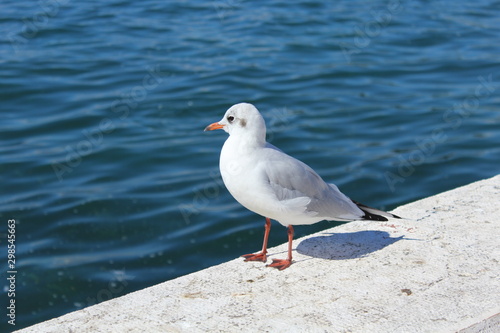 Fototapeta premium Möwe schaut auf das blaue Meer