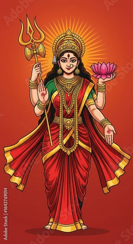 Fototapeta premium Maa Durga HD Mobile Wallpaper – Bold Vector Illustration with Trishul, Lotus,...