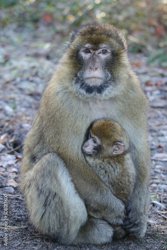 Obraz premium Macaca sylvanus, Baby mit Mutter
