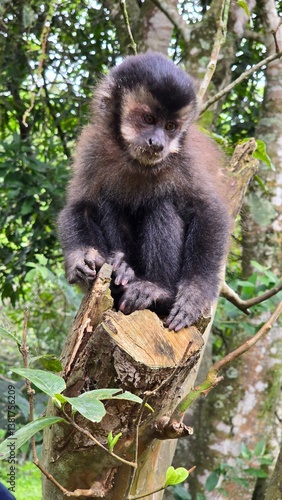 Obraz premium Macaco sentado em cima de um tronco de árvore