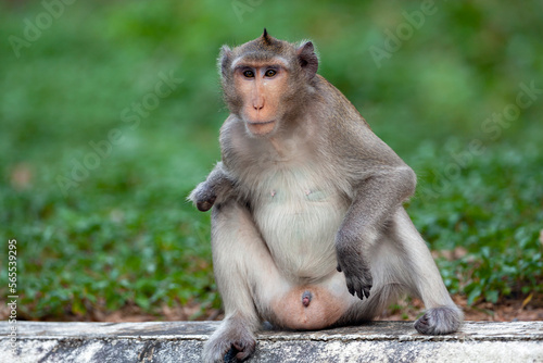 Obraz premium Macaque closeup in its natural habitat monkeys from southeast asia