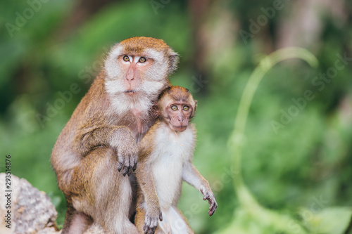 © belyaaa, Fototapeta premium Macaque family in the jungle, in Thailand.