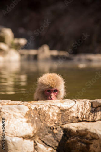 © SarahLouise, Naklejka premium Macaque in Water Jigokudani Yaen Koen (snow monkey park) in Japan