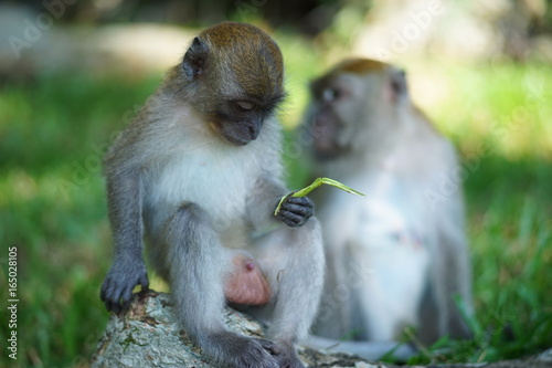 © bigboss, Fototapeta premium Macaque monkey & his mother (on bokeh behind)