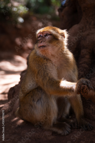 Naklejka premium Macaque monkey in the forest, Morocco.