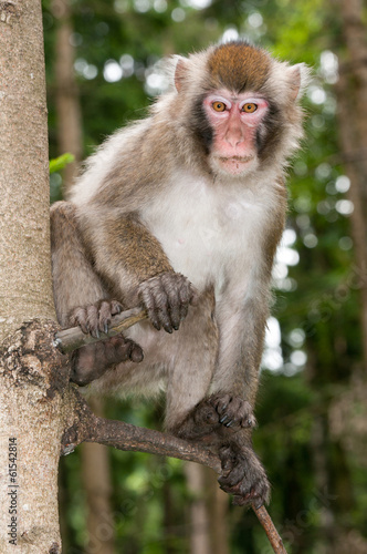 Obraz premium macaque monkey sitting on a tree looking down