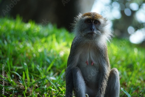 Fototapeta premium macaque monkey sitting on the stone/grass