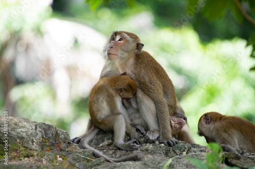 © erika8213, Obraz premium Macaque monkeys in the forest.